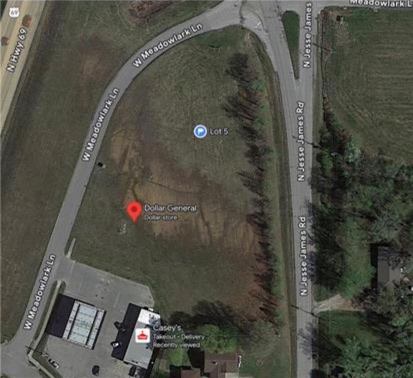From Excelsior Springs Hospital on Rainbow Blvd, cross Hwy 69 and the gently sloping pad site lot, Lot 5 of Jesse James Business Park, is the SW corner of the first intersection.